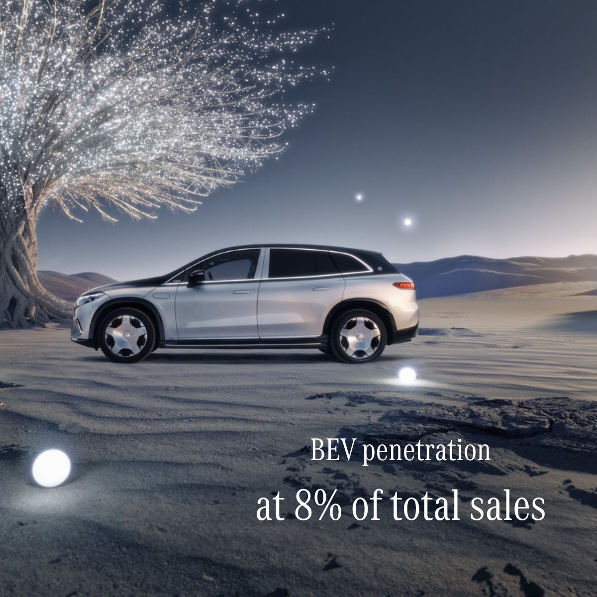 BEVs: Electric vehicle penetration reached 8% of total sales, with EQS SUV achieving record monthly sales. The top-end G 580 Edition 1 sold out for the year, with bookings open for the next delivery slot.